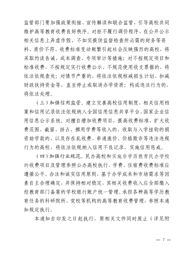 关于进一步规范高校教育收费管理的通知